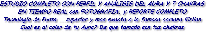 El Estudio Completo del Aura y Chackras con interpretacion y reporte del diagnostico con mas de 20 paginas a todo color con imagenes graficas y textos asi